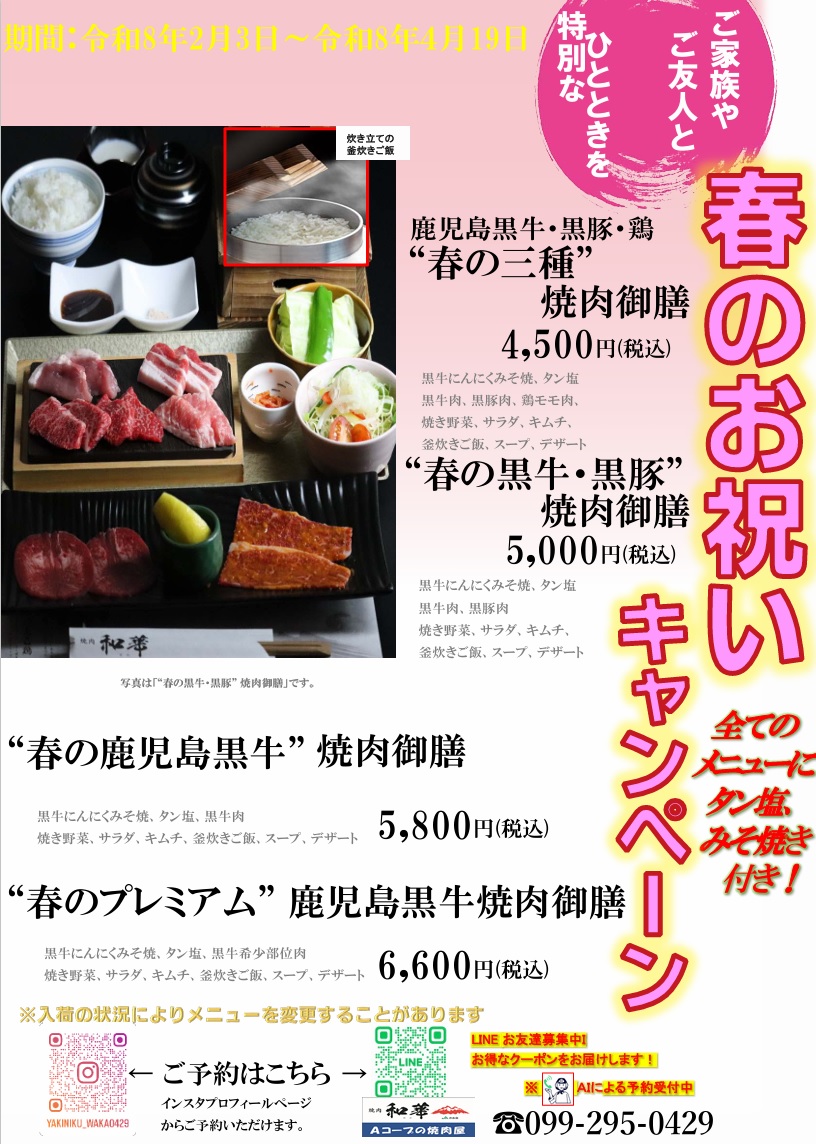 Aコープの焼肉屋「焼肉和華」春のお祝いキャンペーンメニューのお知らせ